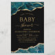 Budget Agate Geode Black and Turquoise Teal Blue and Gold Foil Spring or Summer Baby Shower Invitations - includes modern beautiful and elegant script for the special Mother to Be celebration for a new baby boy or baby girl.