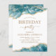 Budget Agate Geode Turquoise Teal Blue and Gold Foil Birthday Party Invitations - includes modern beautiful and elegant script for the special Any Age 13th, 15th, 16th, 18th, 21st, 30th, 40th, 50th, 60th, 70th, 80th, 90th or 100th Birthday Celebration.