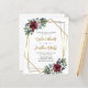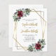 Budget All in One Burgundy Amaryllis Pine Gold QR Code Floral Wedding Invitation... Our affordable "front and back" floral winter wedding invitation features a gold ink geometric frame embellished with bouquets of burgundy amaryllis, white anemones, wispy pine branches and green holiday foliage bordering your personalized wedding invitation text. The back of the invitation contains all of the details you would typically see on separate cards in the wedding packet. This modern style wedding invitation was designed to be both elegant and budget conscious... not to mention time-saving. On the back there is also a QR code graphic you can easily replace with your own QR code... **you can generate your own code** by entering your wedding website URL on the personalization template. All example text can be easily revised with your own information on the same "personalize this" template.