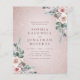 Budget All in One Dusty Pink Roses Boho Glitter Wedding Invitation... Our affordable "All in One" boho roses wedding invitation features a blush rose gold glitter ombre background overlaid with bouquets of pastel and dusty pink roses and greenery framing your elegant typography invitation text. The back of the invitation contains all of the details you would typically see on separate cards within the wedding packet. This modern style all-in-one wedding invitation was designed to be both elegant and budget conscious... not to mention time-saving. All example text can be easily revised with your own information on the personalization template.