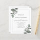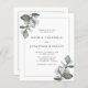 Budget All in One Elegant Dusty Green Eucalyptus Wedding Invitation... Our unique affordable "All in One" botanical wedding invitation features a geometric frame with watercolor eucalyptus branches in shades of dusty green bordering your invitation text. The back of the invitation contains all of the details you would typically see on separate cards within the wedding packet. This modern style front and back wedding invitation was designed to be both elegant and budget conscious... not to mention time-saving. On the back there is also a QR code graphic template you can replace with your own code (or delete if you don't plan to use one... and also delete the text that refers to the QR code information). All example text can be easily revised with your own information on the personalization template.