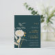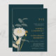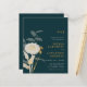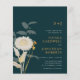 Budget All in One Monogram Vintage Floral Botanical Teal Wedding Invitation... Our budget "All in One" classic vintage floral wedding invitation features a gold and antique white arrangement of flowers and foliage on an elegant dark teal background next to your invitation text. The back of the card contains all of the details you would typically see on separate cards within the wedding packet. This modern style all-in-one wedding invitation was designed to be both elegant and budget conscious... not to mention time-saving. All example text can be easily revised with your own information on the personalization template.