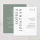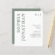 Budget All in One with Details Modern Bold Typography Sage Green Trendy Monogram Wedding Invitation... Our affordable "All in One" sage green wedding invitation features bold serif typography combined with sans serif text for a simple and trendy monogrammed wedding invitation. The back of the invitation contains all of the details you would typically see on separate cards in the wedding packet, including reception time and venue, accommodation options, wedding website, RSVP and registry information. This modern style wedding invitation was designed to be both trendy and budget conscious... not to mention time-saving. All example text can be easily revised with your own information on the personalization template. Please note: you have the option of purchasing envelopes with your invitations or of sourcing your own, if you have a preferred paper products supplier.