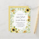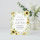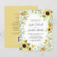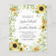 Budget All in One Sunflowers and Foliage Wedding Invitation... Our affordable "All in One" floral and greenery wedding invitation features an intricate arrangement of yellow sunflowers and delicate green foliage bordering your personalized wedding invitation text. The back of the invitation contains all of the details you would typically see on separate cards in the wedding packet. This modern style wedding invitation was designed to be both elegant and budget conscious... not to mention time-saving. On the back there is also a QR code graphic template you can replace with your own code (or delete if you don't plan to use one). All example text can be easily revised with your own information on the personalization template.