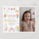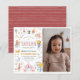 Step right up! Celebrate your little one's special day in style with this cute circus-themed birthday party budget invitation. The left-hand side of this card features a frame of hand-drawn animals, there is a cat jumping through a hoop, a juggling horse, an elephant balancing on a ball, a lion on a unicycle, a fox magician, a mouse doing acrobatics, and more! Inside the frame, the kid's name is written in big outlined letters with the event details in a ticket-style layout. On the right-hand side, there is a photo of your choice. Cards reverse to a festive red colour with a white hand-drawn stripes pattern. A gender-neutral design, perfect for any boy or girl. As part of the budget selection on Zazzle, this sheet isn't a standard invite size or paper quality. If you want this design on an invitation card you can find it in the collection or use the Zazzle Make Machine to transfer it onto the product of your choice. View the collection linked on this page or visit our store for more designs!