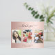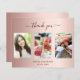 Un glamour 21ème anniversaire (ou l'âge de bonbon) Carte de remerciements personnalisé avec votre propre photo. Ajoutez 3 de vos photos d'anniversaire, la taille verticale, une date, un nom et la note de remerciement. Un arrière - plan rose à l'allure métallique tendance avec du texte noir. Le texte : Merci sur l'avant et vos noms sur l'arrière sont écrits avec une écriture manuscrite stylisée avec des swashes.