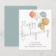 Artsy Leaves Script Happy Thanksgiving Card. A budget price SMALLER 4.5” x 5.6” alternative in a SEMI-GLOSS 110 lb CARD STOCK, similar to the thickness of a postcard. Envelopes are slightly larger than the card size. Trendy Watercolor leaves in autumnal browns, yellow and Dusty blue are to the right, with trendy handwriting style set typography for Happy Thanksgiving. Easily personalise your names and greeting at the bottom. A coordinating blue is on the back.