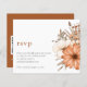 Budget Elegant Autumn Florals Wedding RSVP enclosure. A budget friendly SMALLER 4.5” x 5.6” alternative. Available in a SEMI GLOSS 110 lb CARD STOCK or a SATIN FINISH 80 lb THINNER PAPER STOCK. Add your QR code to your reply page on your wedding website on the back by replacing the QR code on the sample. . You can create QR codes for free online. Simply search “QR code creator” and lots of options come up to create for free. This design has beautiful brown and cream autumnal flowers and foliage bordering the right hand side and elegant lowercase typography.