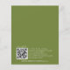 Budget Modern Framed Autumn Olive Green and Orange Pumpkin Floral Wedding Rehearsal Dinner QR Code Invitation. The font colour and type can be changed via the edit menu. You can also change text and background colours on either side if you wish. A value for money smaller 4.5 x 5.6 inch alternative defaulted to the semi gloss option which is recommended for invitations and is a similar thickness to a postcard. The satin option is much thinner.