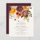 Budget Autumn Warm Rustic Plum Orange Floral Wedding Invitations features a gorgeous bouquet of flowers in plum, orange, terracotta, yellow and green on an off white background. Below is your personalized wedding information. Simply personalize by editing the text in the text boxes provided. Designed for you by ©Evco Studio www.zazzle.com/store/evcostudio