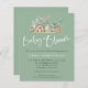 Baby In Bloom Boho Sage Baby Shower Invite. A budget price SMALLER 4.5” x 5.6” alternative. Available in a SEMI GLOSS 110 lb CARD STOCK which is the default option (recommended for invitations, similar to the thickness of a postcard), OR a SATIN FINISH 80 lb THINNER PAPER STOCK (better for thin enclosures). Boho style illustration of shelf with plants and baby toys and stylish informal set script for header baby in Bloom. Gender neutral, with sage green background and white typography for the heading and coordinating sage green on the other side. You can easily personalise the rest of the text to your own requirements and change the background colours if you wish via the customise further option.