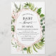 Budget Greenery Botanical Eucalyptus Watercolor and Rose Gold - Blush Pink Geometric Spring Baby Shower by Mail Invitations on white background - includes beautiful and elegant script typography with modern botanical leaves and greenery for the special Mother to Be celebration.
