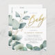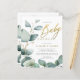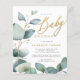 Modern boho chic emerald sage green dusty blue watercolor eucalyptus succulent leaves elegant faux gold script BUDGET affordable baby shower invitation.