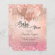For an elegant baby shower. A rose gold and blush pink gradient background. Decorated with rose gold, pink faux glitter drips, paint dripping look and balloons. Personalize and add the name of the bride to be and party details. The name and the text: Baby Shower are written with a hand lettered style script