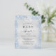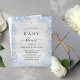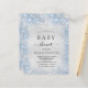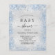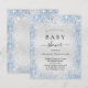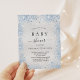 A modern, elegant baby shower, celebrating a baby boy. Faux silver metallic looking background decorated with blue faux glitter dust. Personalize and add a name and party details. Black colored letters.