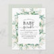 Budget Eucalyptus Greenery Botanical Watercolor and Faux Gold Foil Geometric Spring Baby Shower Sprinkle Invitations on white background - includes beautiful and elegant script typography with modern botanical leaves and greenery for the special Mother to Be celebration.