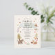 Simply create a cute woodland animals baby shower invitation with this template featuring an owl, fox, bear, squirrel, deer, mushrooms and more for your cottage core theme shower for the mom-to-be.