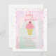 A baby shower sprinkle theme featuring border illustration of confetti and sprinkles. Illustration of a cone of strawberry ice cream topped with cherry and sprinkles at centre. Watercolor inspired background. Personalize the text.