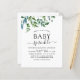 Budget Floral Greenery Botanical Watercolor Spring Baby Sprinkle Shower Invitations on green and white background - includes beautiful and elegant script typography with modern botanical leaves and greenery for the special Mother to Be celebration.