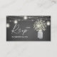 Save money on wedding or party invitations with a small sized RSVP card when buying in packs. Baby's Breath Floral, Grey Chalkboard, & Mason Jar String Lights with meal RSVP card. Small sized version.