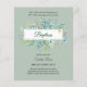 Watercolor green, sage coloured Rucalyptus leaves feature on this double sided Baptism, Christening, First Holy Communion invitation.