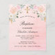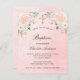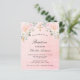 A modern, elegant baptism, celebrating a baby girl. A blush pink background decorated with small golden sparkles, dots and a golden cross. Pink, white florals and eucalyptus greenery. Personalize and add a name and party details. Black coloured letters. Elegant script