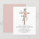 Budget Daughter's Dusty Pink Rose and Sage Green Floral and Eucalyptus - Gold Foil Cross Botanical Greenery Watercolor Christian Religious Baptism Invitations.