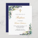 Budget Baptism eucalyptus greenery blue invitation