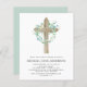 Budget Sage Green Boy's Eucalyptus and Wooden Cross Botanical Greenery Watercolor Christian Religious Baptism Invitations.