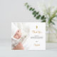A white and faux gold minimalist baptism thank you card. Personalize and add your photo of the child, thank you note and name. Gender neutral.