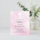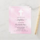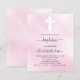 A modern, elegant baptism, celebrating a baby girl. A light pink sky as background, decorated with a white cross. Personalize and add a name and details. Black coloured letters.