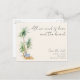 Watercolor palm tree with beach bag design save the date postcards for your destination beach wedding in our "All we need is love and the beach" design. Customize with your wedding details on the front and the back.