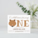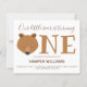 An Our Little Bear is Turning One first baby birthday budget invitation. This budget invitation is on flat paper (not traditional invitation card stock). The design is brown and white with the word "One" in large letters with a bear face illustration as the first letter of the word. (If you are interested in the card stock version of this invite, it is available in the matching collection.) Ready for a great party? Simply, customize this budget invitation, add it to your cart, and happy birthday to your wonderful baby!