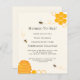This Budget Mommy-To-Bee Baby Shower Invitation is decorated with watercolor bees and a yellow hive on a cream background.