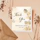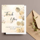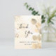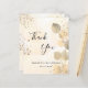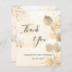 A thank you card for a 50th (or any age) birthday. A golden watercolored background decorated with golden eucalyptus and faux gold glitter dust. On front large black coloured hand lettered script and the text: Thank You, your text, title and a date.