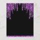 A girly and feminine 21st (or any age) birthday party invitation. On front: A chic black background. Decorated with dark purple faux glitter drips, paint dripping look. Personalize and add a name and party details. The name is written with a hand lettered style script, light purple coloured letters.