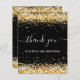 A thank you card for a 50th (or any age) birthday. A black background colour, decorated with faux gold glitter. On front large hand lettered script and the text: Thank You, your text.