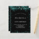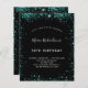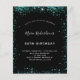 A modern, stylish and glamourous invitation for a 50th (or any age) birthday party. A chic black background with teal, green faux glitter dust. The name is written with a modern hand lettered style script. Personalize and add your party details.