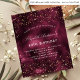 For an elegant 40th (or any age) birthday party. A burgundy agate background. Decorated with rose gold faux glitter, sparkles. Personalize and add a name and party details. The name is written with a hand lettered style script