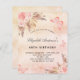 A rose gold, blush pink rustic faux metallic looking background. Decorated with rose gold and pink florals, roses, pampas grass and butterflies. Personalize and add a name and party details.
