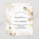 For an elegant 50th (or any age) birthday party. A stylish white backkground decorated with golden eucalyptus and faux gold glitter dust. Personalize and a name and party details. Black coloured letters.