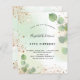 For an elegant 50th (or any age) birthday party. A golden watercolored background decorated with eucalyptus greenery and faux gold glitter dust. Personalize and a name and party details. Black and golden coloured letters.