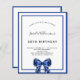 Budget birthday navy blue white bow invitation