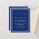 A modern, elegant and invitation. A navy blue background decorated with white frames. Personalize and add a name and details. White text.