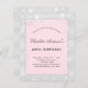 Faux silver metallic and blush pink coloured background decorated with faux silver glitter dust. Personalize and add a name and party details. Black coloured, elegant script.