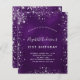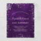 A modern, stylish and glamourous invitation for a 21st (or any age) birthday party. A deep purple coloured background with faux silver glitter dust. The purple colour is uneven. The name is written with a modern hand lettered style script. Personalize and add your party details.