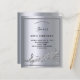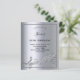 A trendy, modern 50th birthday party invitation card. A faux silver metallic looking background, with a frame and music notes, black coloured letters. Personalize and add a name and party information.