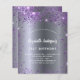 A modern, stylish and glamourous invitation for a 21st (or any age) birthday party. A dark faux silver metallic looking background with purple faux glitter, sparkles. The name is written with a modern hand lettered style script. Personalize and add your party details.