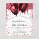 For an elegant 21st (or any age) birthday. A stylish white background. Decorated with red faux glitter and balloons. Personalize and add a name, age and party details. The name is written with a hand lettered style script