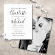 Featuring your photo, signature style names, this elegant budget black and white wedding invitation can be personalized with your information in chic lettering. Designed by Thisisnotme©